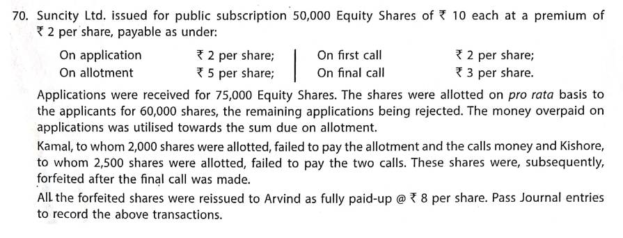 Solution of Question Number 70 Issue of Shares TS Grewal 2023-24 Edition [ISC Board]