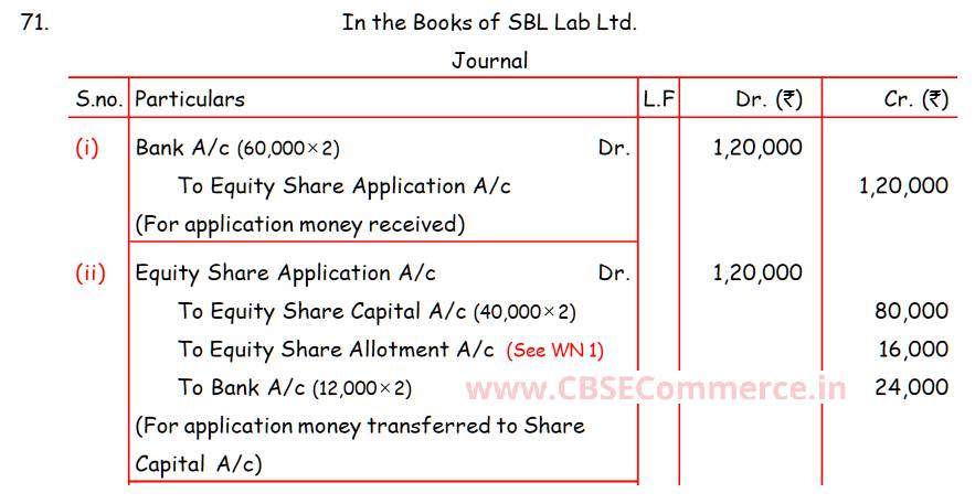 Solution of Question Number 71 Issue of Shares TS Grewal 2023-24 Edition [ISC Board]