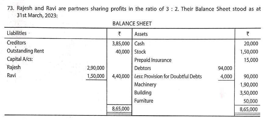 Here is the Solution of Q 73 Admission of Partner TS Grewal Class 12 ISC Board Accountancy Book 2023-24 Edition.