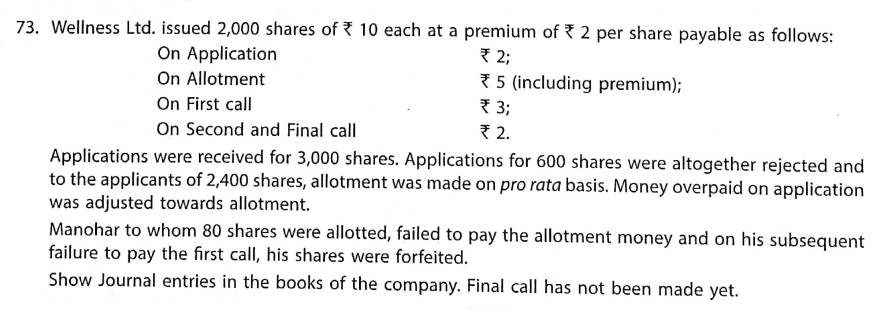 Solution of Question Number 73 Issue of Shares TS Grewal 2023-24 Edition [ISC Board]