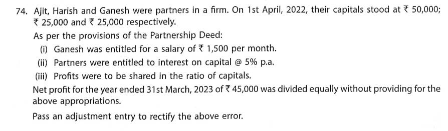 Solution of Question Number 74 Fundamentals of Partnership TS Grewal 2023-24 Edition [ISC Board]