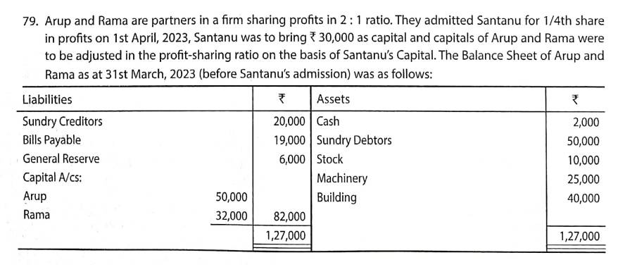 Solution of Question Number 79 Admission of a Partner TS Grewal 2023-24 Edition [ISC Board]