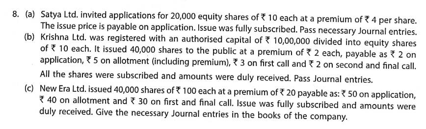 Solution of Question Number 8 Issue of Shares TS Grewal 2023-24 Edition [ISC Board]