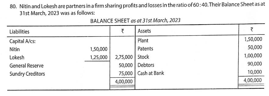 Here is the Solution of Q 80 Admission of Partner TS Grewal Class 12 ISC Board Accountancy Book 2023-24 Edition.