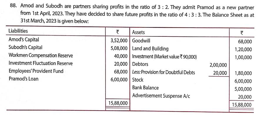 Solution of Question Number 88 Admission of a Partner TS Grewal 2023-24 Edition [ISC Board]