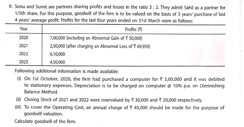 Solution of Question Number 9 Goodwill TS Grewal 2023-24 Edition [ISC Board]