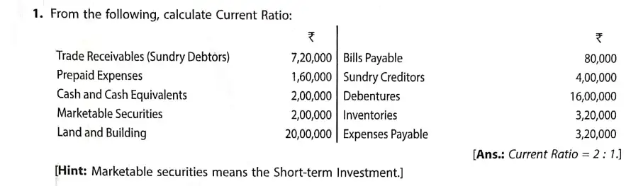 TS Grewal Solution Question 1 Accounting Ratios TS Grewal Book CBSE 2024-25 Edition