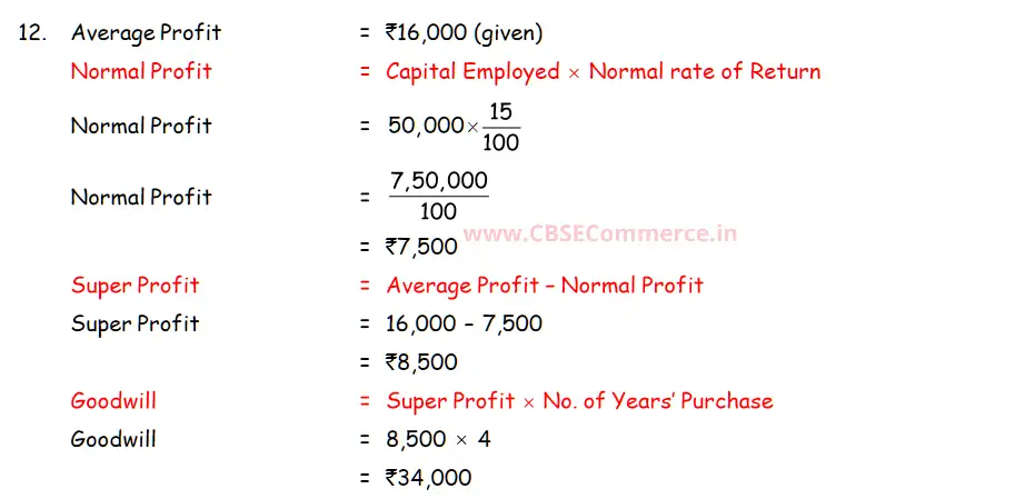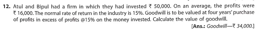 TS Grewal Solution Question 12 Goodwill-Nature and Valuation TS Grewal Book CBSE 2024-25 Edition