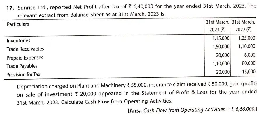 Q.17 Solution Cash Flow Statements TS Grewal Book Class 12 CBSE
