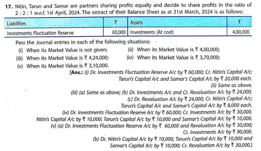 TS Grewal Solution Question 17 Change in Profit-Sharing Ratio TS Grewal Book CBSE 2024-25 Edition