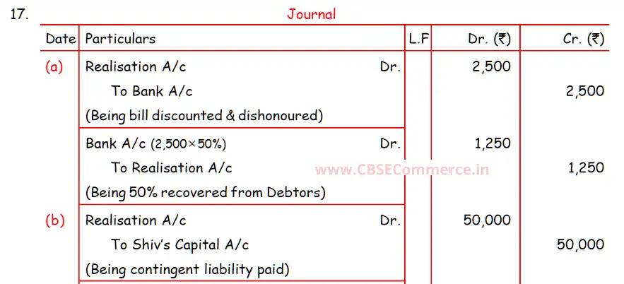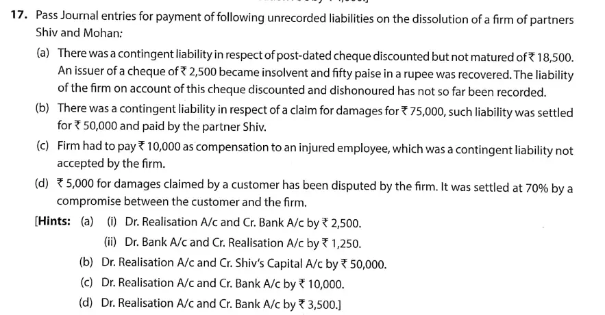 TS Grewal Solution Question 17 Dissolution of Partnership Firm TS Grewal Book CBSE 2024-25 Edition