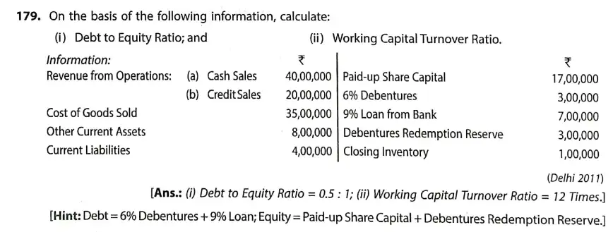 TS Grewal Solution Question 179 Accounting Ratios TS Grewal Book CBSE 2024-25 Edition