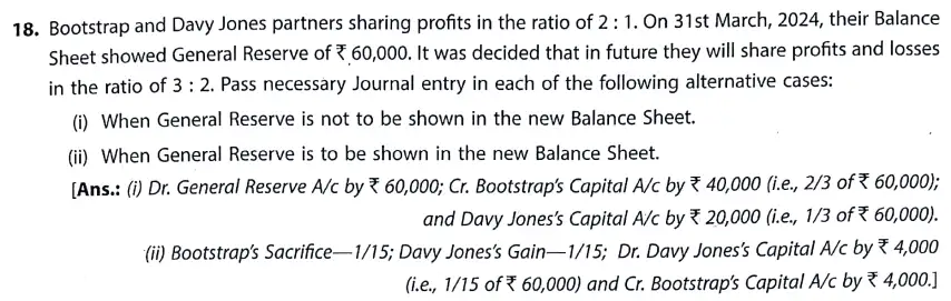 TS Grewal Solution Question 18 Change in Profit-Sharing Ratio TS Grewal Book CBSE 2024-25 Edition
