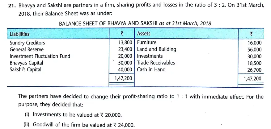 Q.21 Solution Change in Profit-Sharing Ratio TS Grewal Book Class 12 CBSE