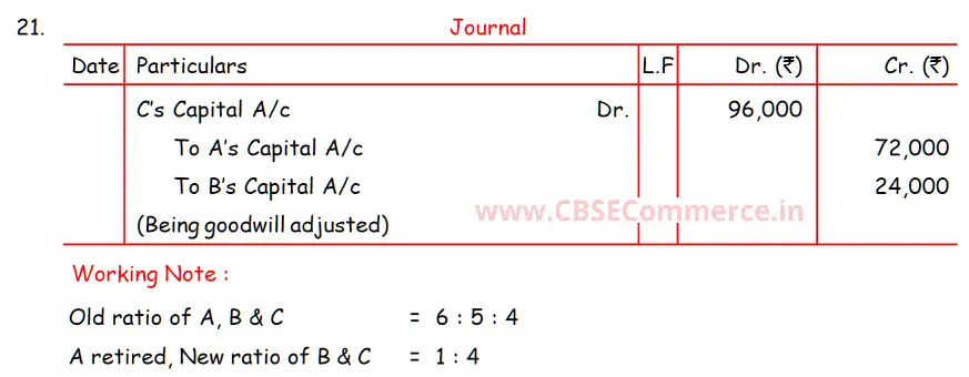 TS Grewal Solution Question 21 Retirement of Partner TS Grewal Book CBSE 2024-25 Edition