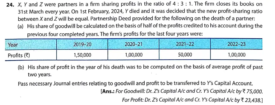 Q.24 Solution Death of a Partner TS Grewal Book Class 12 CBSE