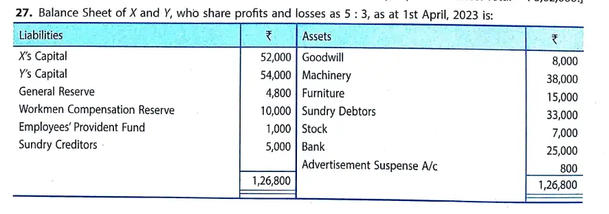TS Grewal Solution Question 27 Change in Profit-Sharing Ratio TS Grewal Book CBSE 2024-25 Edition