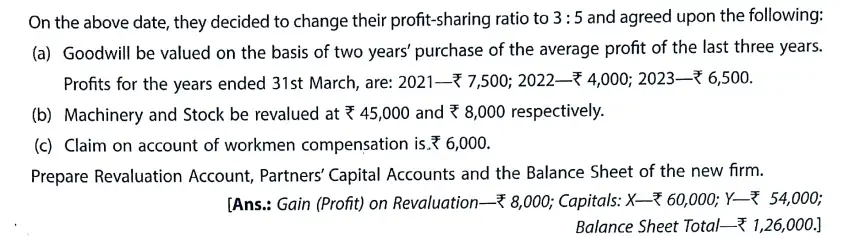 TS Grewal Solution Question 27 Change in Profit-Sharing Ratio TS Grewal Book CBSE 2024-25 Edition