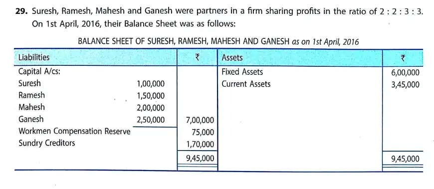 TS Grewal Solution Question 29 Change in Profit-Sharing Ratio TS Grewal Book CBSE 2024-25 Edition