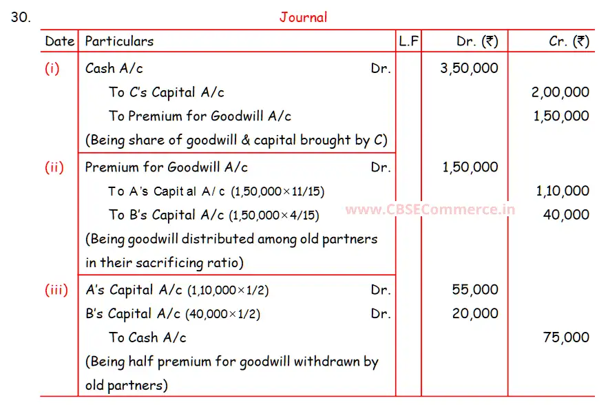 TS Grewal Solution Question 30 Admission of Partner TS Grewal Book CBSE 2024-25 Edition