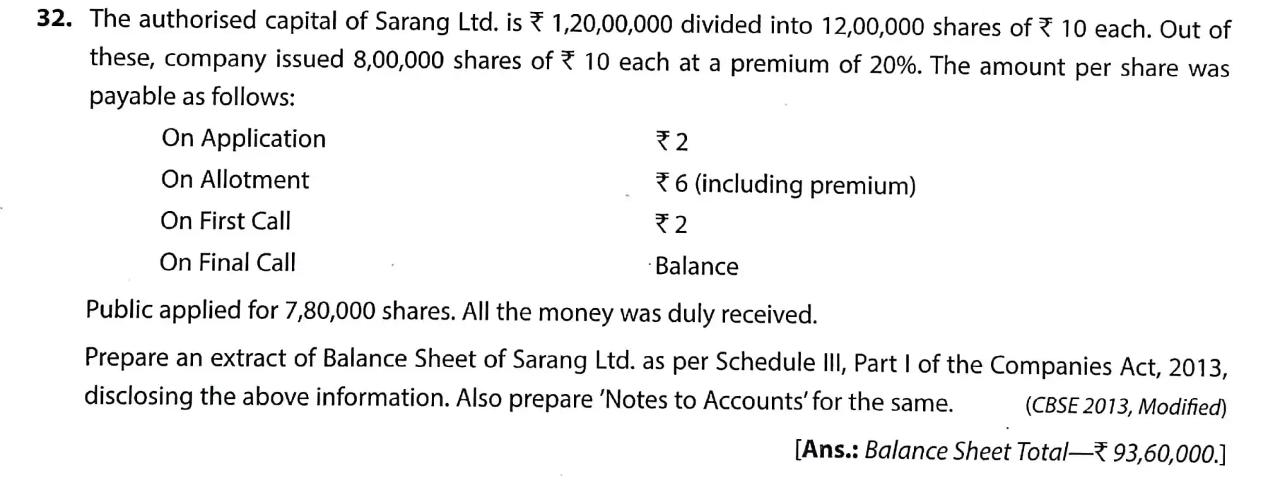 TS Grewal Solution Question 32 Accounting for Share Capital TS Grewal Book CBSE 2024-25 Edition