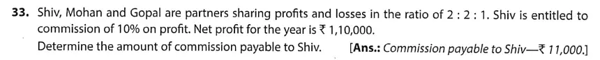 TS Grewal Solution Question 33 Accounting for Partnership Firms – Fundamentals TS Grewal Book CBSE 2024-25 Edition