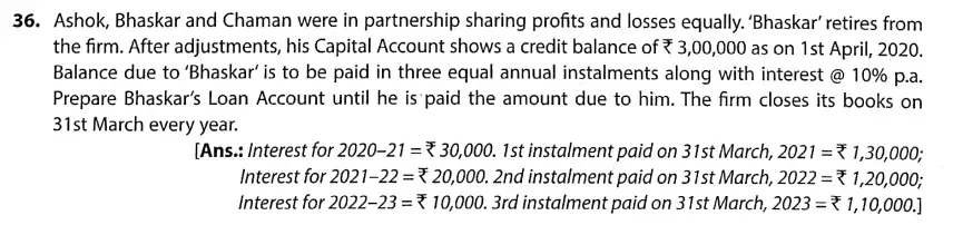 TS Grewal Solution Question 36 Retirement of Partner TS Grewal Book CBSE 2024-25 Edition