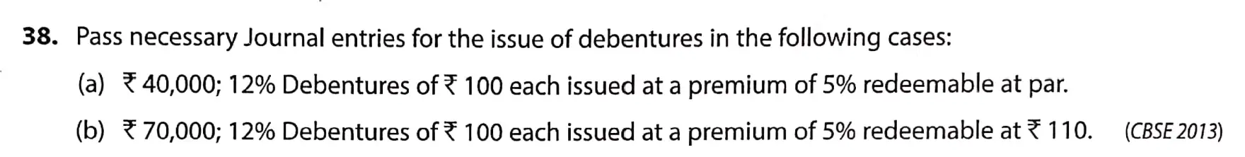 TS Grewal Solution Question 38 Issue of Debentures TS Grewal Book CBSE 2024-25 Edition