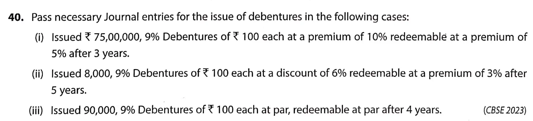 Q.40 Solution Issue of Debentures TS Grewal Book Class 12 CBSE