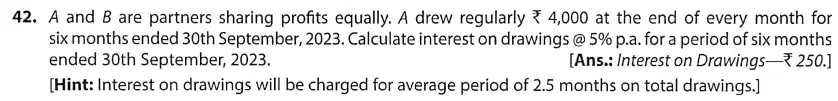 TS Grewal Solution Question 42 Accounting for Partnership Firms – Fundamentals TS Grewal Book CBSE 2024-25 Edition