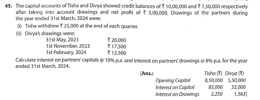 TS Grewal Solution Question 45 Accounting for Partnership Firms – Fundamentals TS Grewal Book CBSE 2024-25 Edition