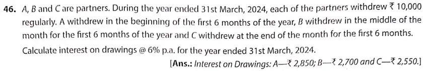 TS Grewal Solution Question 46 Accounting for Partnership Firms – Fundamentals TS Grewal Book CBSE 2024-25 Edition
