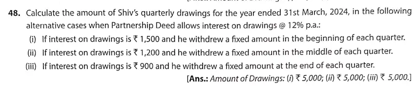 TS Grewal Solution Question 48 Accounting for Partnership Firms – Fundamentals TS Grewal Book CBSE 2024-25 Edition
