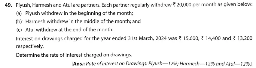 TS Grewal Solution Question 49 Accounting for Partnership Firms – Fundamentals TS Grewal Book CBSE 2024-25 Edition