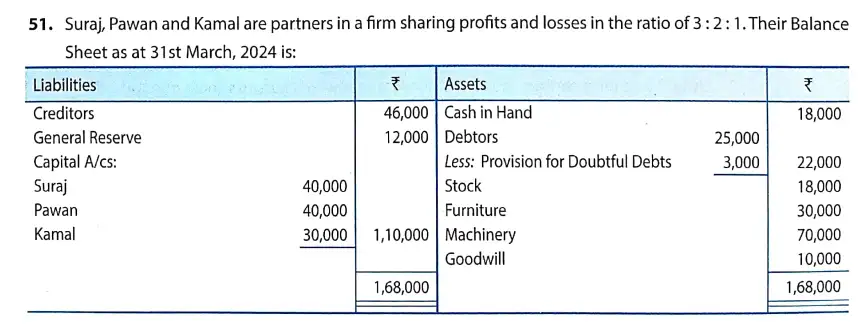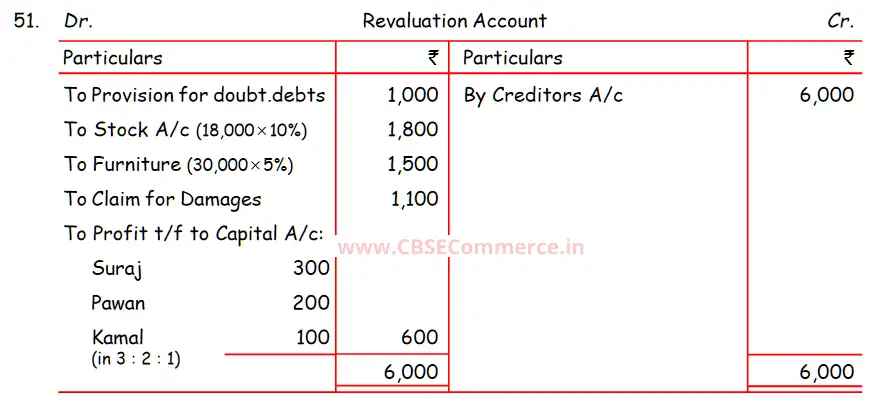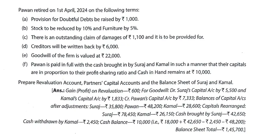 TS Grewal Solution Question 51 Retirement of Partner TS Grewal Book CBSE 2024-25 Edition