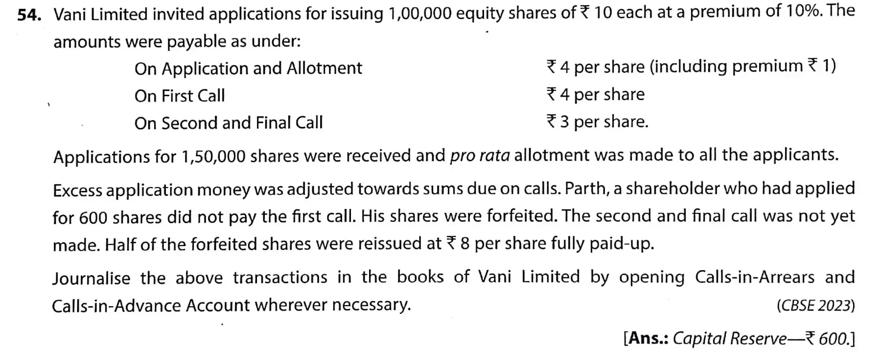 TS Grewal Solution Question 54 Accounting for Share Capital TS Grewal Book CBSE 2024-25 Edition
