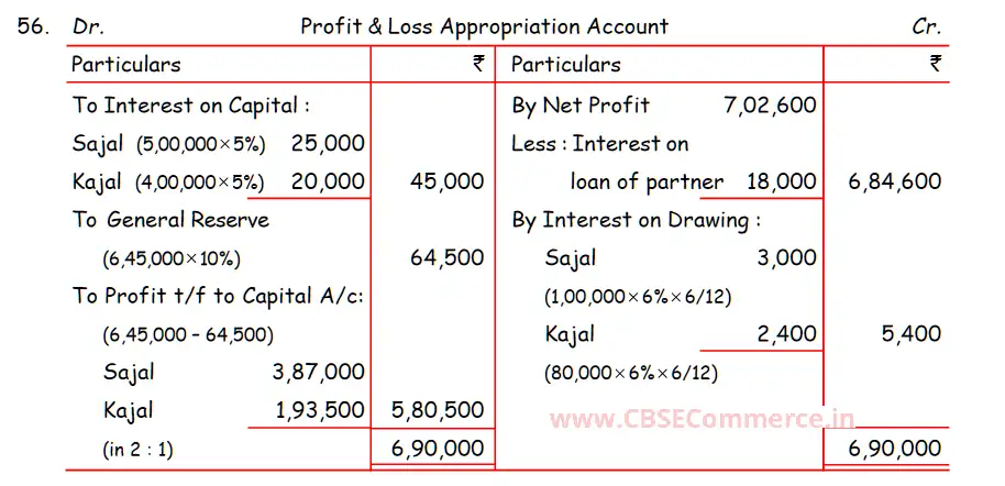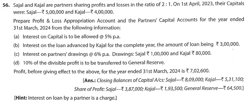 TS Grewal Solution Question 56 Accounting for Partnership Firms – Fundamentals TS Grewal Book CBSE 2024-25 Edition