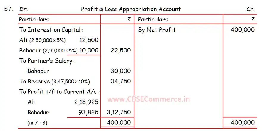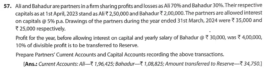 TS Grewal Solution Question 57 Accounting for Partnership Firms – Fundamentals TS Grewal Book CBSE 2024-25 Edition