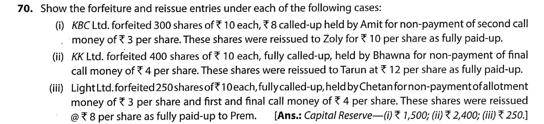 TS Grewal Solution Question 70 Accounting for Share Capital TS Grewal Book CBSE 2024-25 Edition