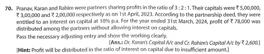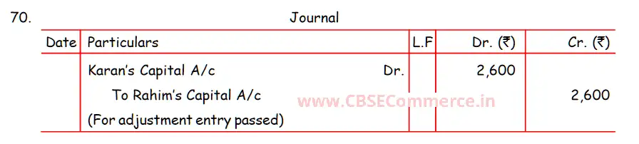 TS Grewal Solution Question 70 Accounting for Partnership Firms – Fundamentals TS Grewal Book CBSE 2024-25 Edition