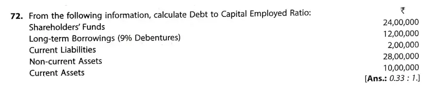 TS Grewal Solution Question 72 Accounting Ratios TS Grewal Book CBSE 2024-25 Edition