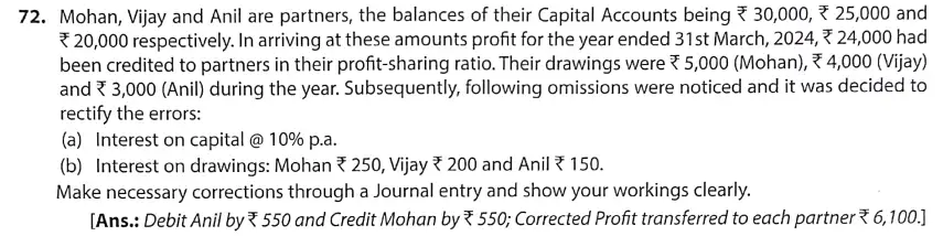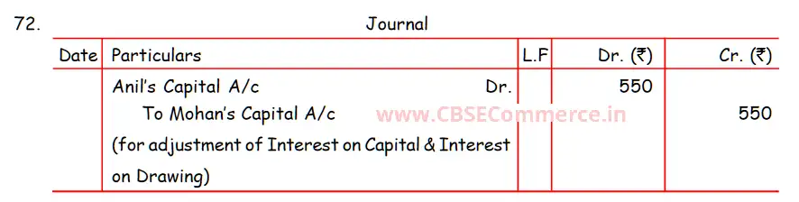 TS Grewal Solution Question 72 Accounting for Partnership Firms – Fundamentals TS Grewal Book CBSE 2024-25 Edition