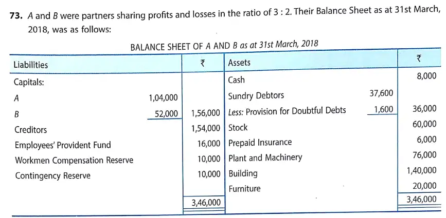 TS Grewal Solution Question 73 Admission of Partner TS Grewal Book CBSE 2024-25 Edition
