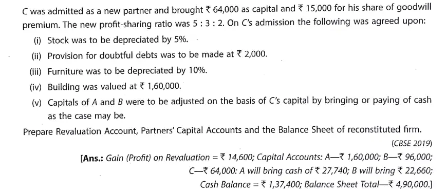 TS Grewal Solution Question 73 Admission of Partner TS Grewal Book CBSE 2024-25 Edition
