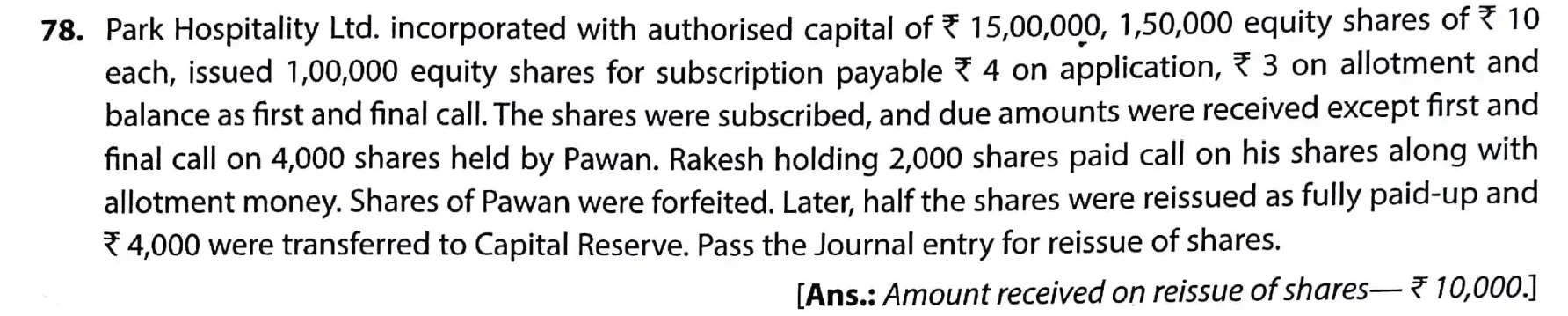 TS Grewal Solution Question 78 Accounting for Share Capital TS Grewal Book CBSE 2024-25 Edition
