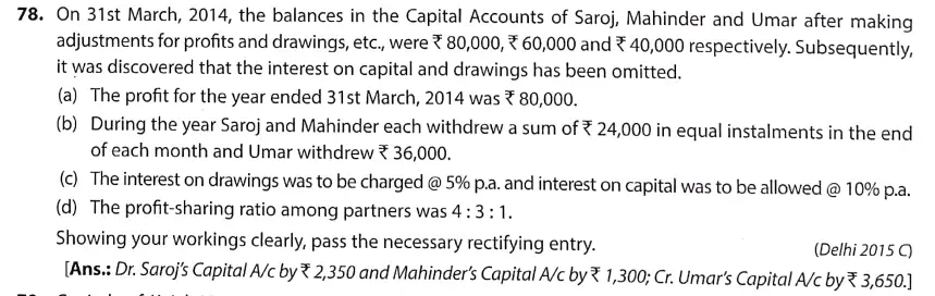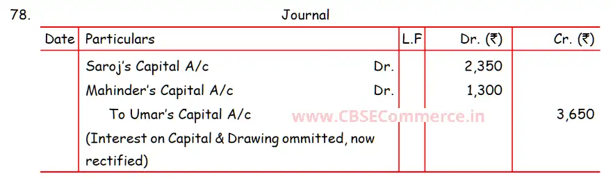 TS Grewal Solution Question 78 Accounting for Partnership Firms – Fundamentals TS Grewal Book CBSE 2024-25 Edition