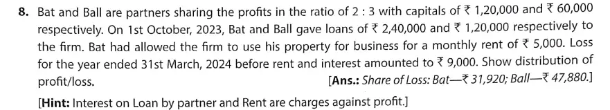TS Grewal Solution Question 8 Accounting for Partnership Firms – Fundamentals TS Grewal Book CBSE 2024-25 Edition