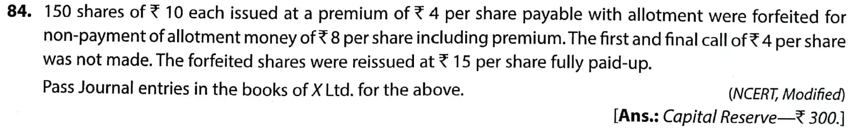 TS Grewal Solution Question 84 Accounting for Share Capital TS Grewal Book CBSE 2024-25 Edition