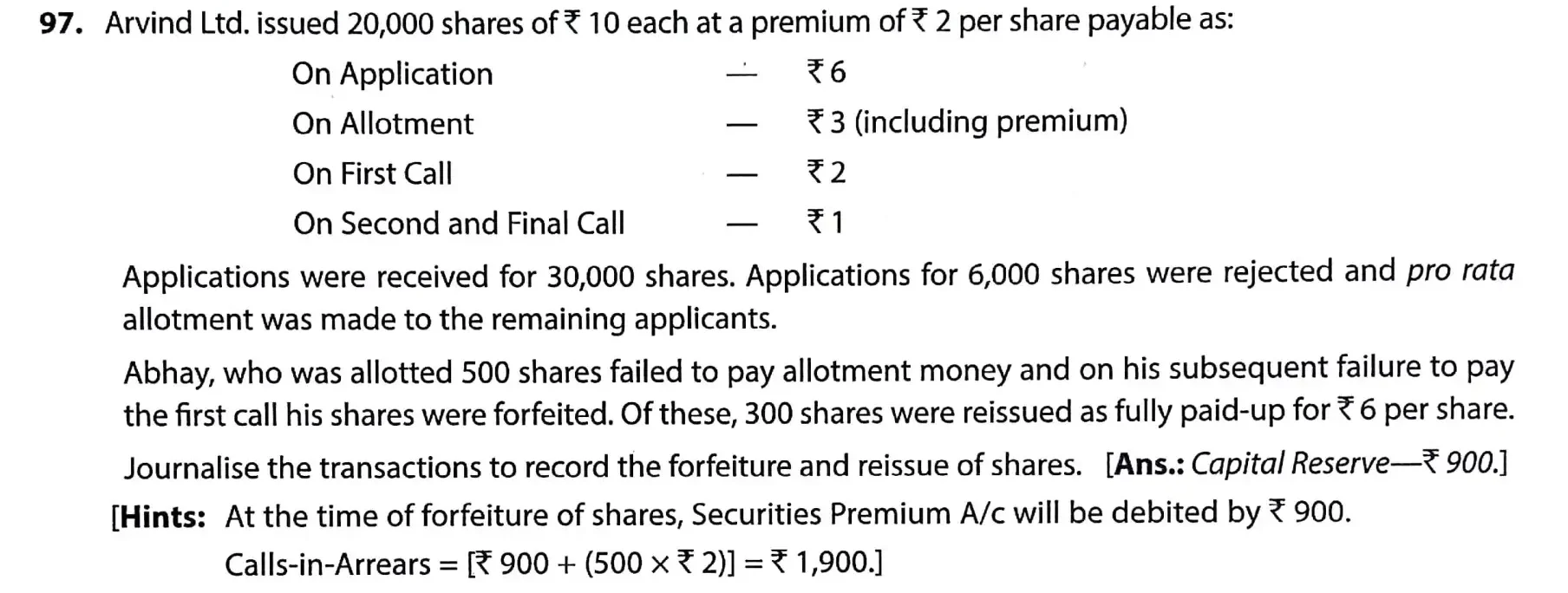 TS Grewal Solution Question 97 Accounting for Share Capital TS Grewal Book CBSE 2024-25 Edition