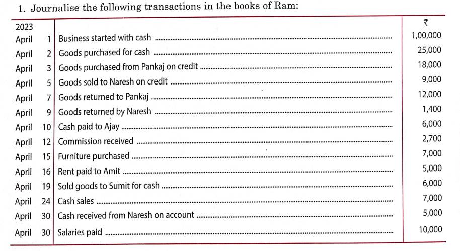 Here is the Solution of Q 1 Journal TS Grewal Class 11 Accountancy 2023-24 for the CBSE Board.
